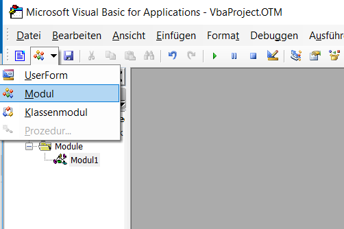Mit Alt+F11 den VBA-Editor aufrufen. Ein neues Modul erstellen.