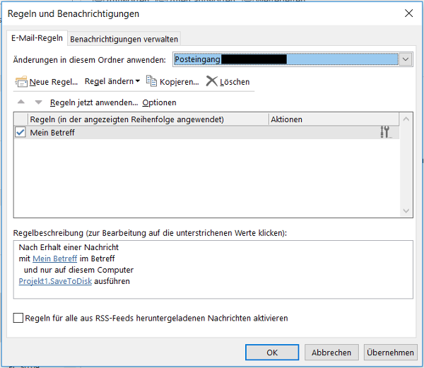 Mit einer Regel in Outlook ein VBA-Skript aufrufen welches die angehängten Dateien speichert.